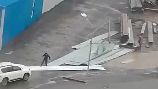 По Норильску пронесся ураган — стихия вырвала из земли светофоры и столбы и заставила людей крутить «сальтухи» в воздухе