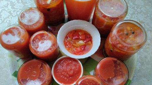 Готовлю сразу лечо из болгарского перца с томатным соком и томатную пасту на зиму. Все хранится дома в шкафу.