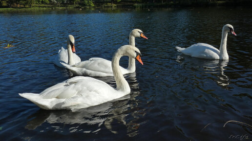 Попробовали угостить наших красавчиков листиками одуванчиков! Белые Гатчинские лебеди!