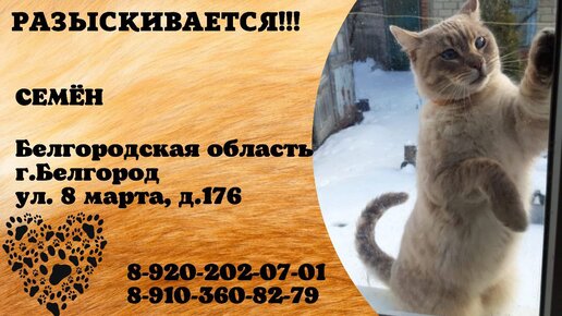 Пропал кот! СЕМЁН , Белгородская область , г. Белгород