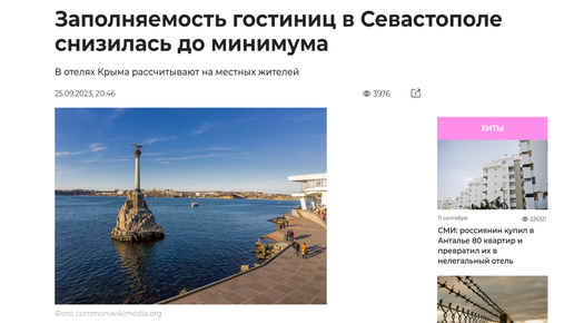 Новости туризма 25/09/2023 Заполняемость гостиниц в Севастополе снизилась до минимума #туризм