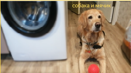 Собака играет с мячиком