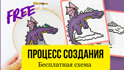 Спящий дракон - Бесплатная авторская схема вышивки крестом. Символ Нового года 2024. Процесс рисования