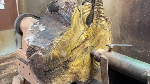 Принцип обработки гнилого бревна на токарном станке. Чаша для фруктов с нанесением лака.