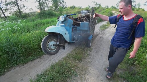 Везем дрова на Мотороллере Муравей с Китайским Движком.