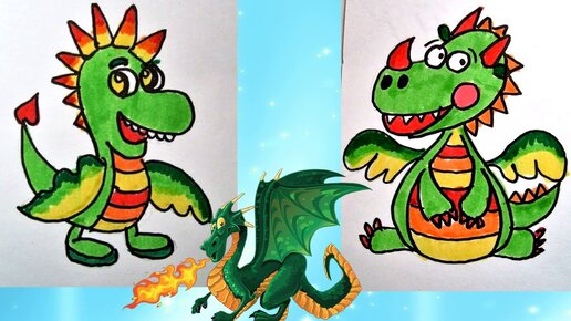 2 идеи нарисовать дракона, символ 2024 года. Открытки.
