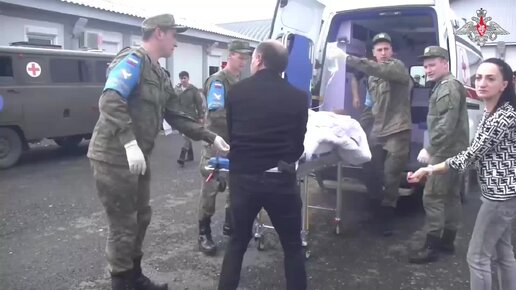 Российские миротворцы эвакуируют санитарной авиацией жителей Нагорного Карабаха, пострадавших после взрыва топлива