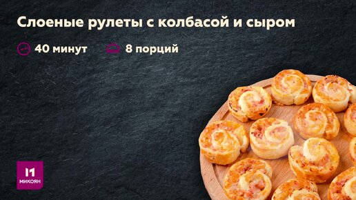 Рецепт «Слоеных рулетов с колбасой Микоян и сыром» | Микоян