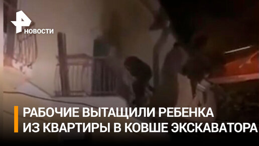 Рабочие с помощью ковша экскаватора спасли ребенка из горящей квартиры