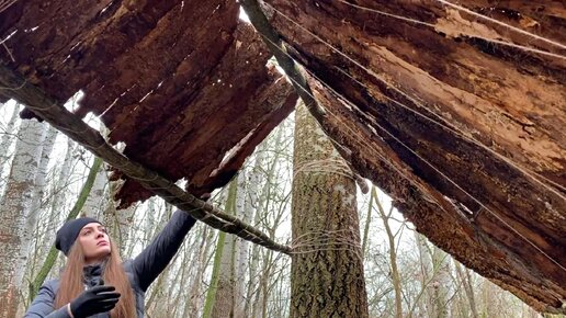 Бушкрафт укрытие: Плетёный гамак | Навес из коры | Легкий лагерь в лесу за день