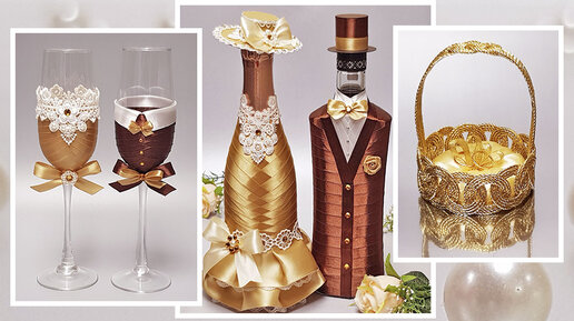💖Красивые идеи подарков на годовщину свадьбы🌹 Декор бутылок и бокалов. Корзиночка для колец.
