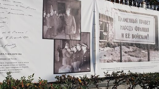 Выставка, посвященная легендарной эскадрильи «Нормандия - Неман» на ограде Французского посольства в Москве (поёт Ив Монтан)