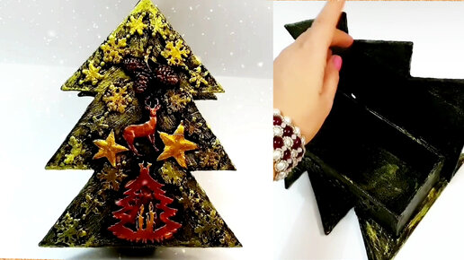 Шкатулка(купюрница) в форме ёлочки. Подарочная коробка( шкатулка) своими руками. Подробная видеоинструкция.