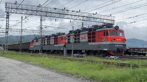 ВЛ80р-1780 с толкачом 3ЭС5К-130 и тяжелым грузовым составом прибывают на станцию Слюдянка-2 ВСЖД