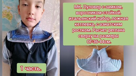 МК. 1часть.Пуловер для подростка с воротником стойк.и замком. Итальян.набор, ложная кетлевка, расчёт на реглан на ОГ р38-44. Узор Рубчики.