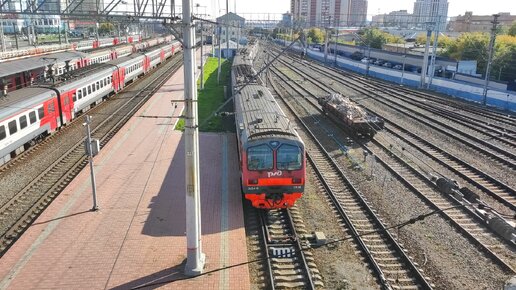 Электропоезд ЭД4М-0336 отправляется со станции Новосибирск-Главный