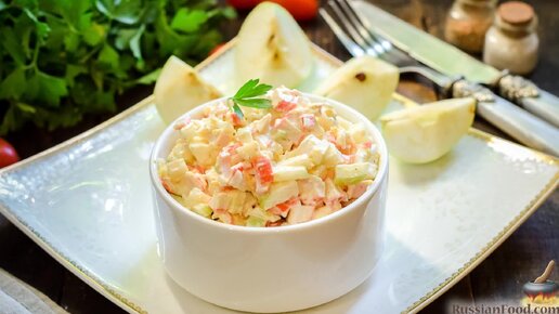 Такой салат вполне может быть подан на праздничный стол! Салат с крабовыми палочками, яблоками, брынзой и яйцами