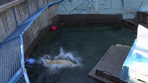 Белка показывает представление с канистрой на айсберге. 27.09.2023