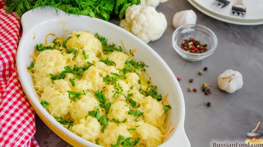 Шелковистая, сливочная, с приятным ароматом. Цветная капуста, запечённая в сметанно-чесночном соусе под сыром