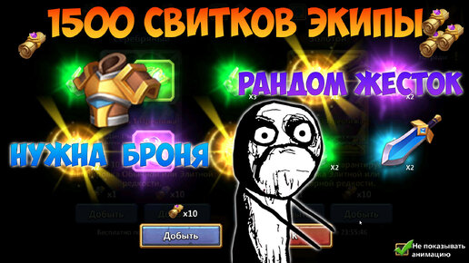 1500 СВИТКОВ ЭКИПЫ, НУЖНА БРОНЯ, МЕЧ ТОЖЕ НЕ ПЛОХО, #битвазамков #castleclash, #cbcevent, #igg