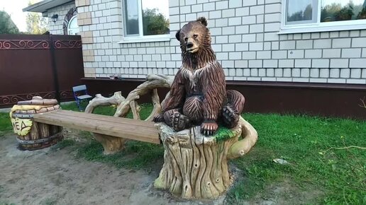 Лавочка на даче .с скульптурой медведя мастер Наталья Гонт.
