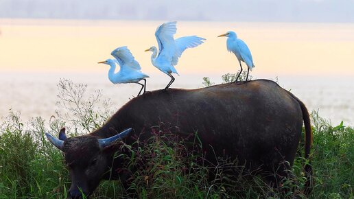 Египетская цапля: Эти птицы буквально живут на спинах крупных животных, что делает их крайне успешными | Видео 🎥