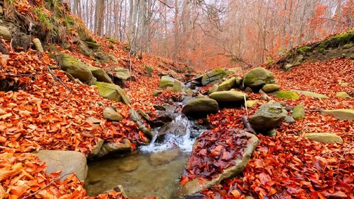 Красивый, осенний лес, прекрасная природа и реки. Бурлящая вода в осенний реках.