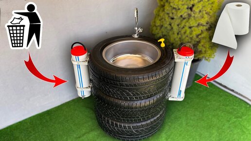 Необычная идея _ Изготовление садовой раковины из автомобильных покрышек и трубы ПВХ
