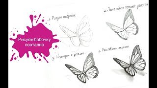 Рисуем бабочку в графике поэтапно 🦋 Урок пошаговый для начинающих