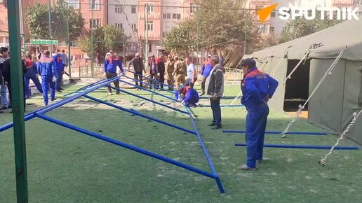 Рядом с взорвавшимся складом в Ташкенте, развернуты палатки для оказания медицинской помощи пострадавшим