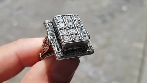 Перстень квадратный мужской уникальный с камнями Сваровски