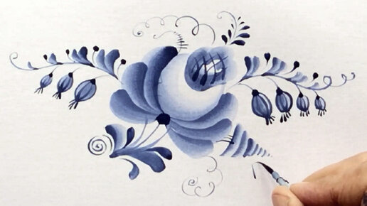 Учимся рисовать Гжельскую Розу! Гжельская роспись. Мастер-класс от Валентина Розанова