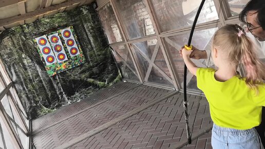 Девочка Полина стреляет из настоящего лука в кремле. как стрелять из лука