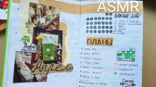 АСМР/ASMR оформление личного ежедневника. Обзор разворотов апрель-май.