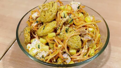 Сочный салат с копченой курицей и корейской морковью