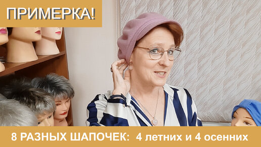 8 разных шапочек: 4 летних и 4 осенних в сочетании с одеждой в синих тонах