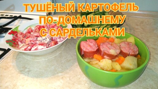 Тушëный картофель по-домашнему с сардельками. Очень вкусно и сытно!
