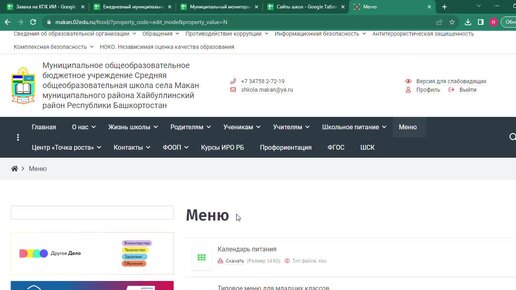 Заполнение раздела МЕНЮ на сайте школы на платформе edu02