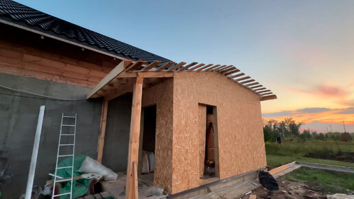 Обшивка каркаса, утепление перекрытия опилками, обрешетка
