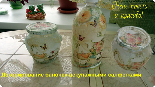 Декорирование пластиковых и стеклянных банок. Декупаж банок.