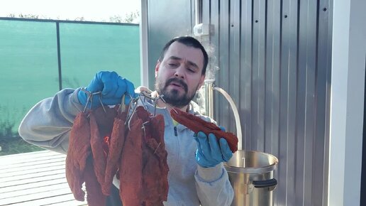 Вяленая грудка индейки холодного копчения ( По типу бастурмы ) /Домашняя коптильня и дымогенератор Hanhi / Холодное копчение дома