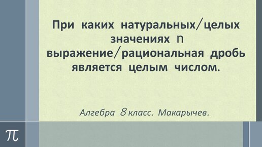 Алгебра 8 класс. При каких натуральных\целых значениях n выражение\ рациональная дробь является целым числом.