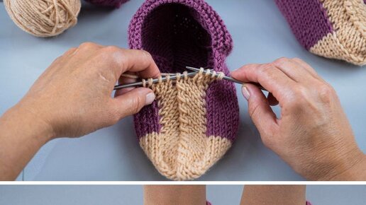 Простые следки без швов на подошве из остатков пряжи!