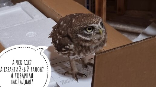 Сыч Лучик мешает распаковке - ЪУЪ! Сова филин Ёль неохотно ушла из дома ночевать в свой вольер