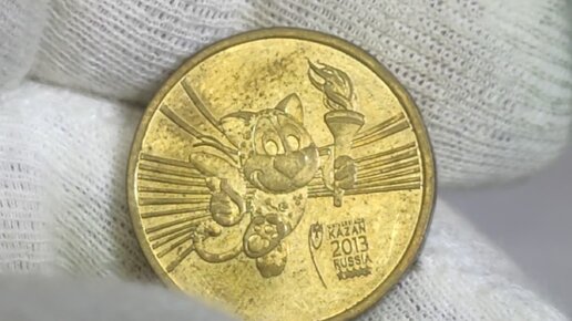 Цена 1000 рублей за монету без покрытия. 10 рублей 2013 года. Универсиада в г. Казани. Талисман универсиады(крылатый котёнок с факелом). СПМ