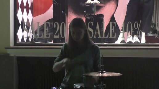Девушка за барабанной установкой великолепно справляется с игрой. Заворожила своей манерой исполнения. Да и песня известная