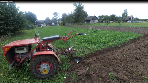 Пашу оборотным плугом мотоблоком Белорус-МТЗ.