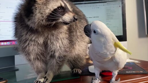 Енот Марсель очень сладкий, а попугаю Чарли определенно нужно проверить, каков он на вкус.