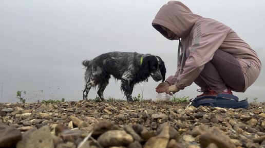 На прогулке со спаниелем. Раннее утро, озеро, туман