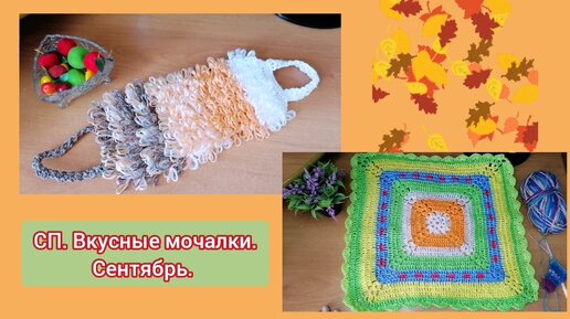 СП. Вкусные мочалки. Отчёт за сентябрь. Коврик из 2 нитей полипропилена и мочалка из 2 нитей носочной добавки крючком.